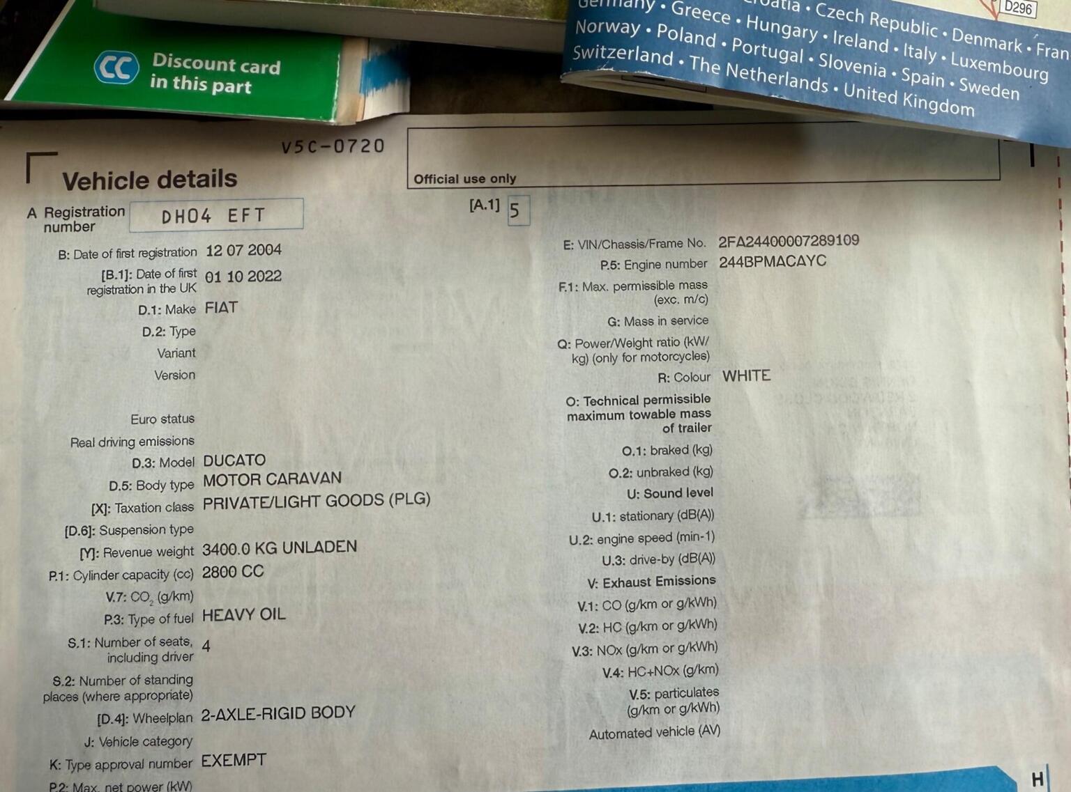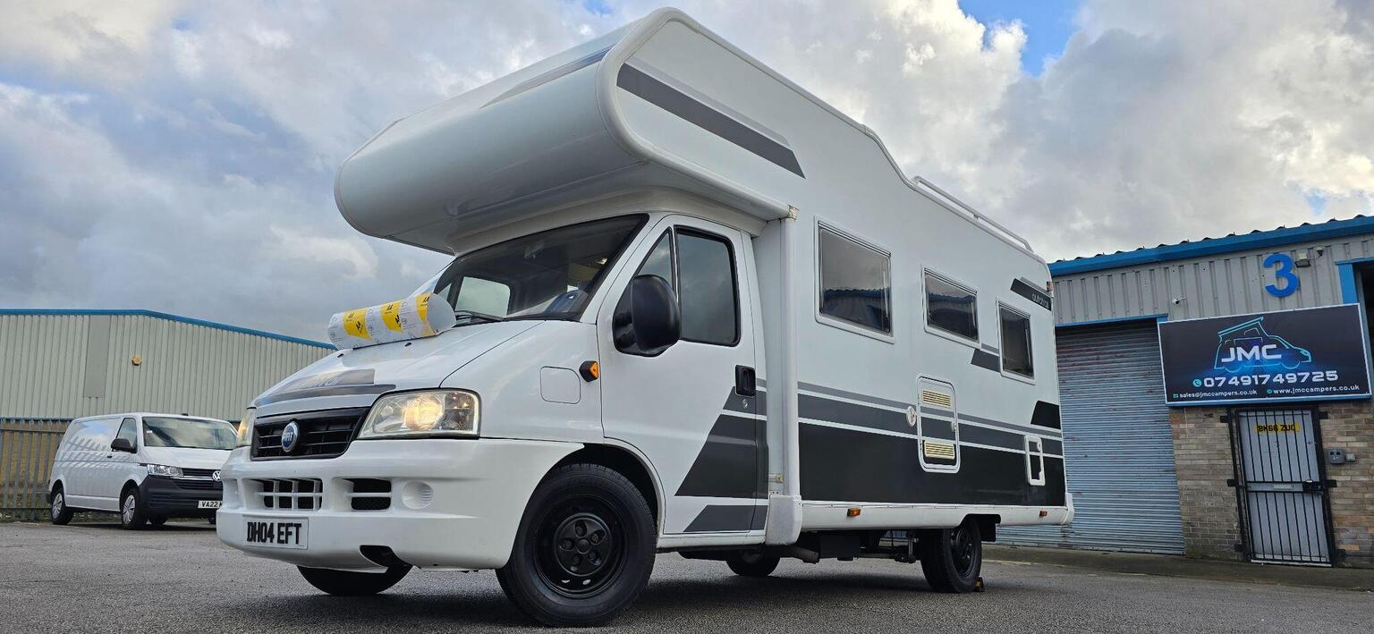 KINDLY WATCH VIDEO "WHEN ITS GONE ITS GONE" NO VAT, HERE WE HAVE AN OTHER IMMACULATE MOTOR HOME, PART EXCHANGE WELCOME, FINANCE AVAILABLE, FIAT DUCATO 2.8 (2004), 3400 kg, UNLADEN, MAINTAINED VERY WELL, 4 BERTH, 4 BELTED SEATS, LARGE KING SIZE BED ABOVE THE CABIN & DOUBLE BUNK BEDS AT THE BACK, PLENTY OF STORAGE, LED LIGHTS, PLUG SOCKETS, USB CHARGING POINTS, LEISURE BATTERY WITH HOOK UP, SOLAR PANEL, INVERTER, 12V TV, GAS BOTTLE, GAS HEATER, LEISURE BATTERY, WIND AWNING , TOILET, SINK & SHOWER AREA, FRIDGE AND FREEZER, SINK AND 2 BURNER GAS HOB, TWO WATER TANKS, BRAND NEW SEATS AND MATTRESS, RECENTLY DONE FULL SERVICE, NEW BRAKE PADS, NEW DISCS, MOT VALID UNTIL 26/10/2026, COMES WITH FULL HABITATION CHECK CERTIFICATE, MECHANICALLY ALL SOUND AND DRIVES PERFECTLY FINE, FULL SERVICE HISTORY, ONLY 1 OWNER, THIS MOTOR HOME WAS IMPORTED FROM FRANCE, DATE OF FIRST REGISTERED IN THE UK 01/10/2022, (All papers are available), LEFT HAND DRIVE, DIESEL, MANUAL, 6 MONTH NATIONWIDE WARRANTY WITH AA, 12 MONTHS COMPLIMENTARY BREAK DOWN COVER WITH AA, COVERED 85997 WARRANTED MILEAGE, MAINTAINED VERY WELL, REAR CAMERA, RESERVE NOW WITH A FULLY REFUNDABLE DEPOSIT, WE ARE AN FCA REGISTERED DEALER, APPROVED DEALER FOR CAR FINANCE & PEGASUS FINANCE, LOW RATE 0% DEPOSIT FINANCE AVAILABLE, MORE TECHNICAL DETAILS, FEATURES & FINANCE CALCULATION OF THIS CAMPER KINDLY VISIT OUR WEBSITE, https://www.jmccampers.co.uk/ VIEWINGS BY APPOINTMENT ONLY, BUY WITH CONFIDENCE SEE OUR CUSTOMER REVIEWS, LIVE VIDEO AVAILABLE, NATIONWIDE HOME DELIVERY AVAILABLE, DRIVE AWAY INSURANCE AVAILABLE (Opt), WE ARE OPEN 7 DAYS A WEEK, CALL OR TEXT FOR FURTHER DETAILS *** *** 07491749725 *** **THIS MOTOR HOME IS HPI ALL CLEAR,